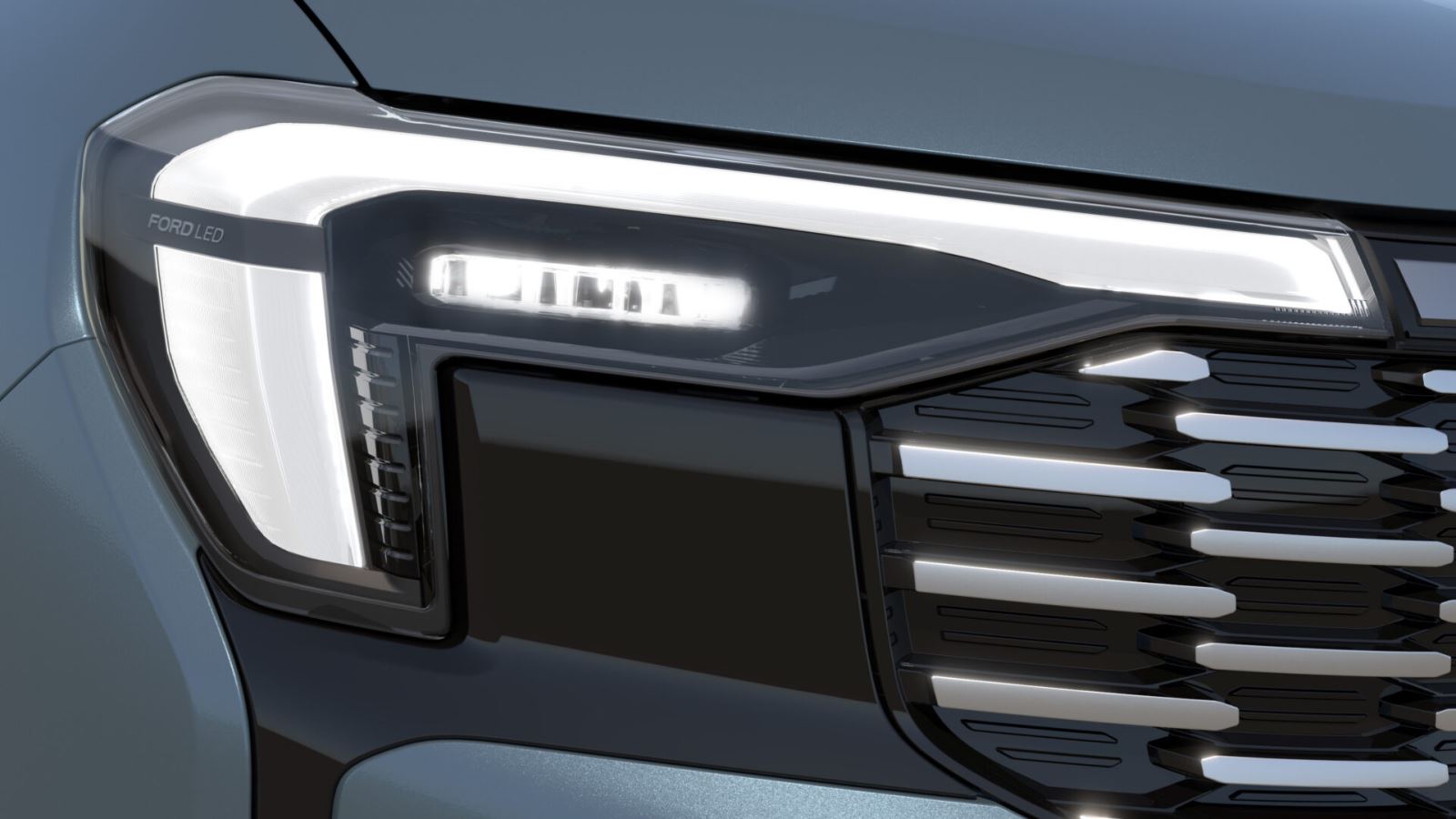 Ford Territory Mới mang diện mạo ấn tượng với mặt ca-lăng lớn đậm chất Ford, tạo dáng vẻ mạnh mẽ và cá tính. Cụm đèn pha LED đặc trưng kết hợp cùng dải LED ban ngày không chỉ mang lại phong cách hiện đại mà còn tối ưu hiệu quả chiếu sáng.