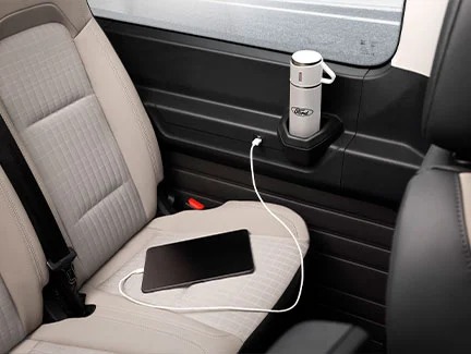 Tận hưởng sự thuận tiện với hộc đựng ly nước, sạc thiết bị di động trên hành trình dài nhờ cổng sạc USB thiết kế tại vị trí ngồi.