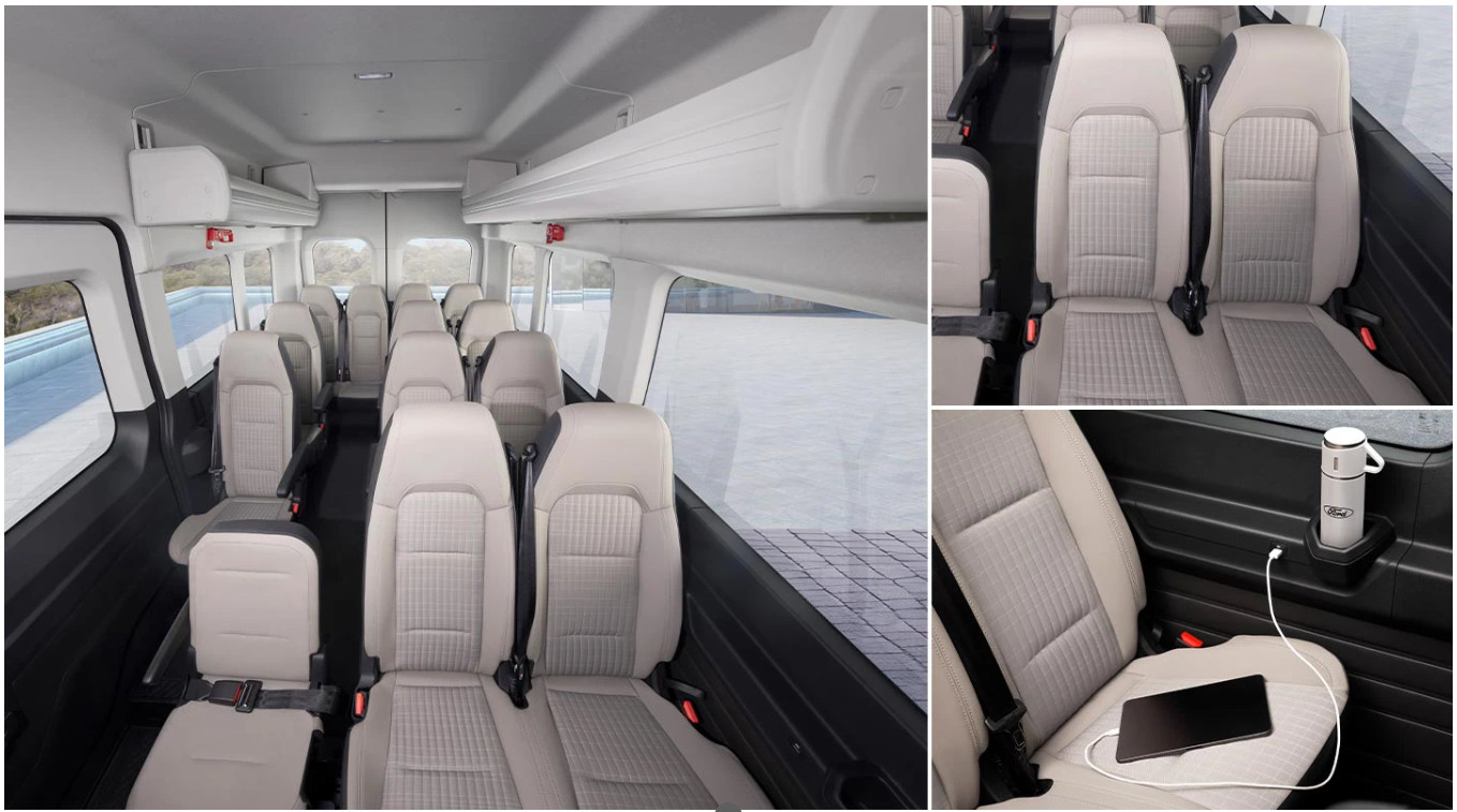 Nội thất của Ford Transit Hoàn toàn Mới được nâng cấp để mang lại vẻ sang trọng và sự thoải mái cho người lái và hành khách trong suốt thời gian ở trên xe.