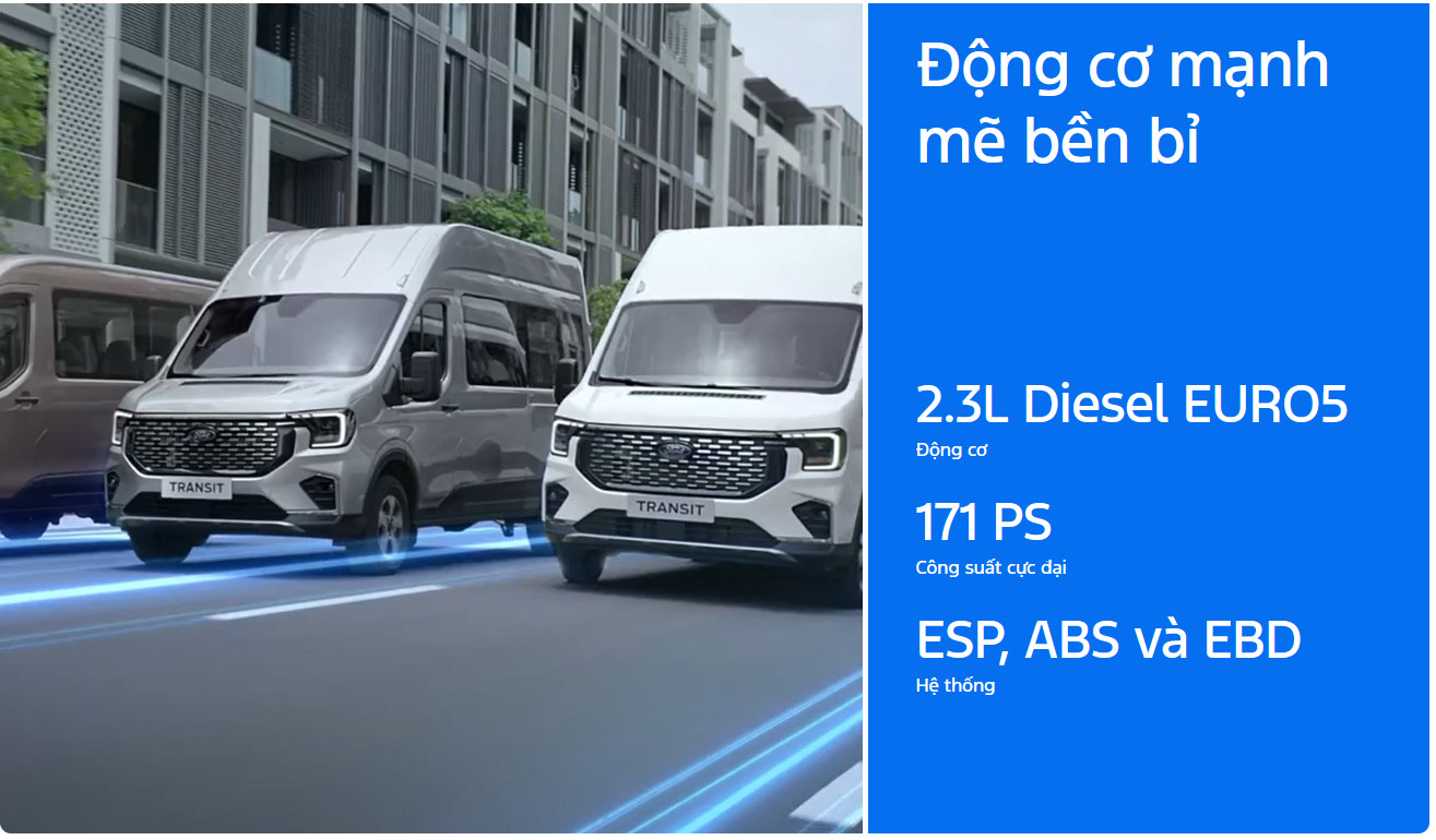 Ford Transit là người bạn đồng hành hoàn hảo nhờ thiết kế an toàn với túi khí dành cho lái xe và hành khách phía trước