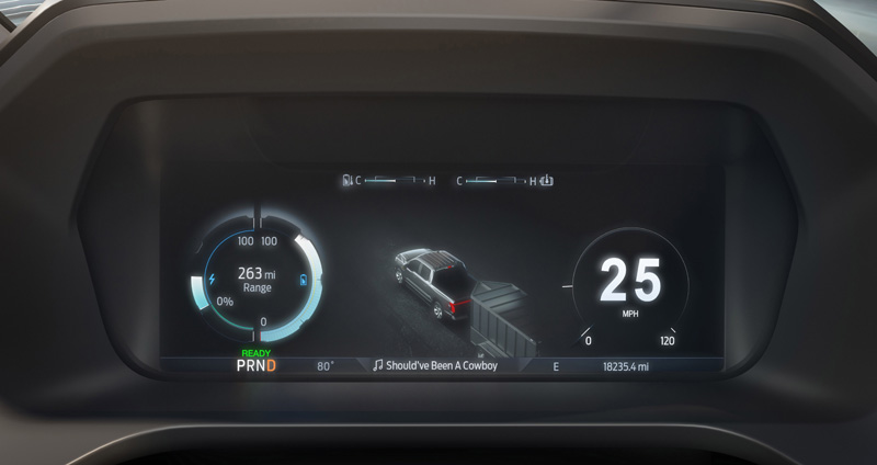 Với Ford Co-Pilo360, tính năng tự hành BlueCruise trên F-150 Lighting cho phép lái xe có thể rảnh tay trên hơn 100.000 dặm đường cao tốc phân làn đạt chuẩn. Xe trang bị cụm đồng hồ kích thước 12 inch, có giao diện tùy biến, tự động hiển thị những thông tin quan trọng minh họa cho chế độ và tình trạng vận hành thực tế của xe cũng như liên tục cập nhật thông tin cần thiết cho người lái như khả năng vận hành của chế độ tự hành trên cao tốc hay các thông tin như lượng điện được tái tạo từ quá trình phanh.