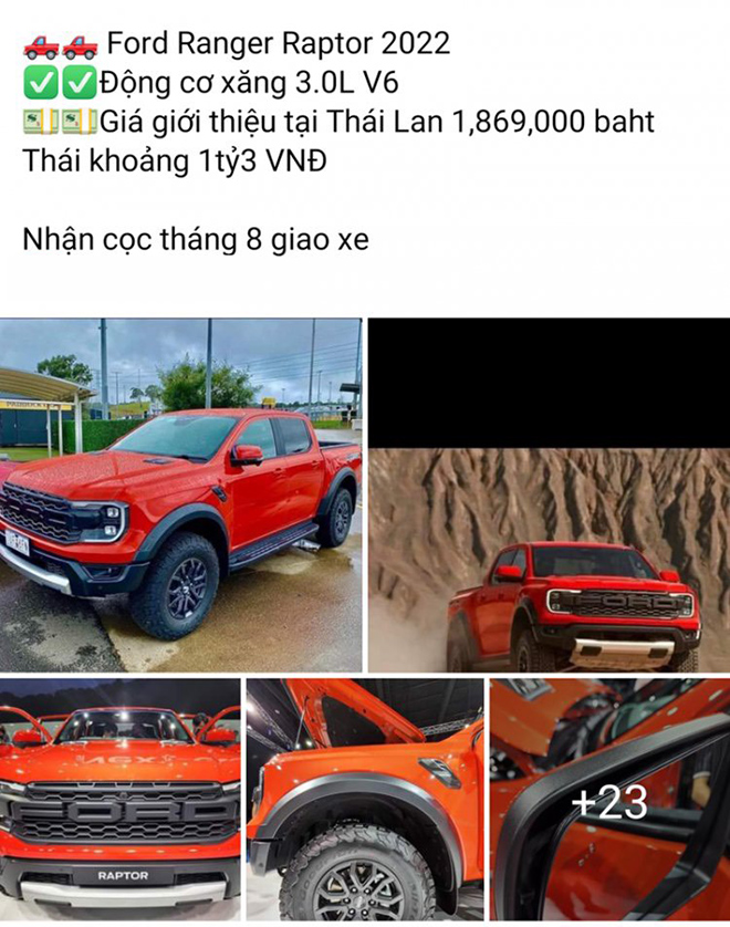 Ford Thái Lan đã công bố giá bán cho Ranger Raptor 2022 phiên bản máy xăng V6. Ngay sau đó, đã có thông tin đại lý Ford ở Việt Nam đã bắt đầu nhận đặt cọc Ranger Raptor thế hệ mới tại Việt Nam, hứa hẹn giao xe vào tháng 8 năm nay.