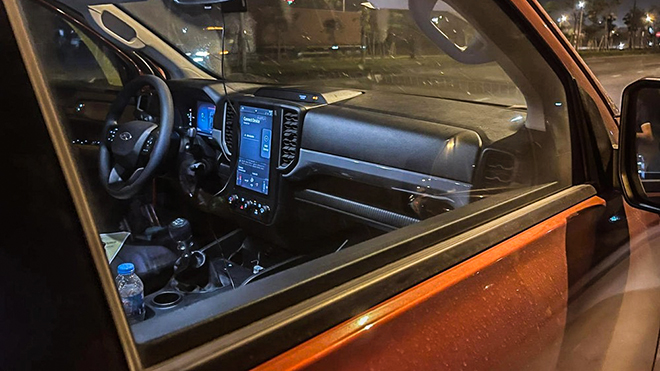 Sau loạt hình bắt gặp đang chạy thử trên phố thì mới đây một phần nội thất của chiếc bán tải này bất ngờ xuất hiện trên các hội nhóm mạng xã hội với các chi tiết bất ngờ. Theo các hình ảnh được đăng tải trên các trang mạng xã hội thì lần chiếc bán tải Ford Ranger thế hệ mới bị bắt gặp mang màu sơn đặc trưng của phiên bản Wildtrak cao cấp nhất nhưng đây có thể là bản tiêu chuẩn bởi không có các chi tiết như thanh giá nóc, nắp thùng sau, mâm xe có kích thước nhỏ hơn.