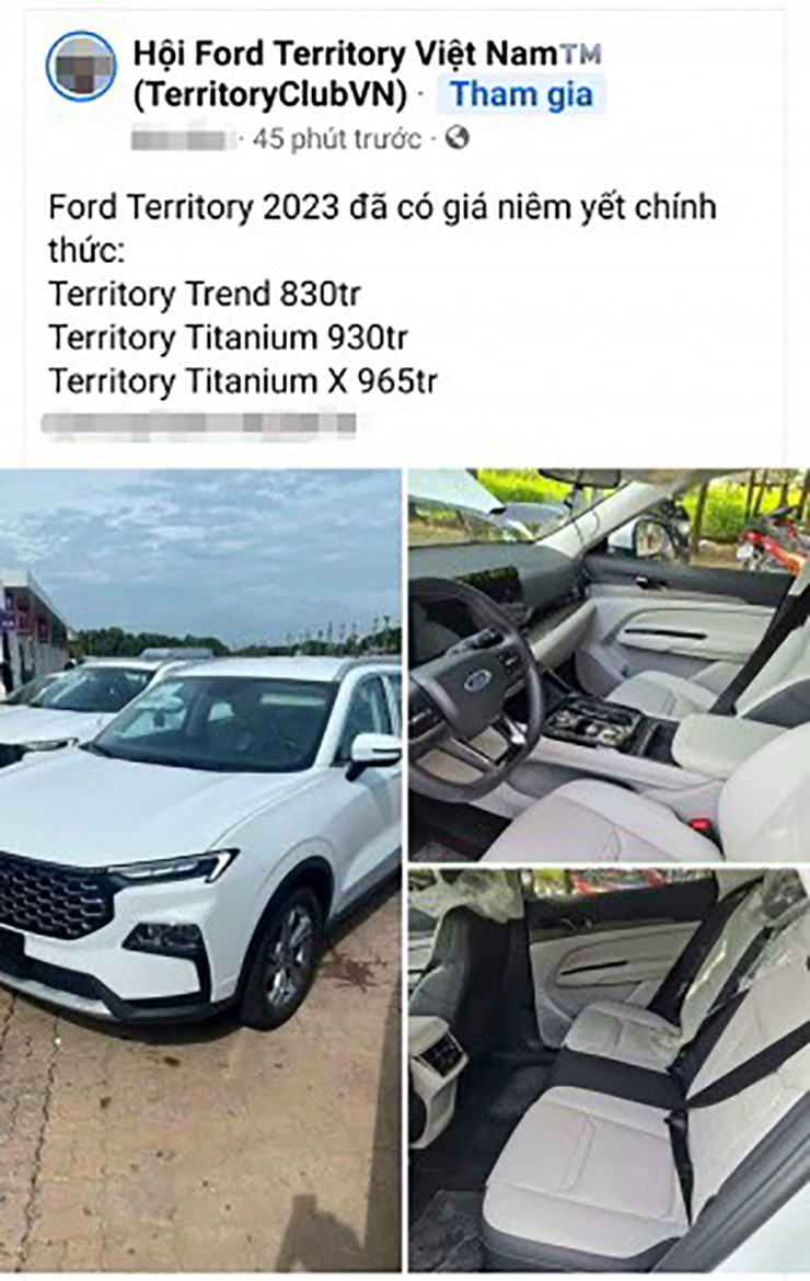 Mẫu xe hoàn toàn mới Ford Territory 2023 nhận được sự quan tâm rất lớn của người dùng Việt Nam, bởi từ rất lâu Ford Việt Nam bỏ hẳn phân khúc CUV cỡ C để phát triển các dòng xe lớn hơn, cũng như các dòng xe thương mại. Tuy nhiên, mức giá hé lộ trên Hội Ford Territory Việt Nam có thể khiến cộng đồng yêu thích mẫu xe này nản lòng.