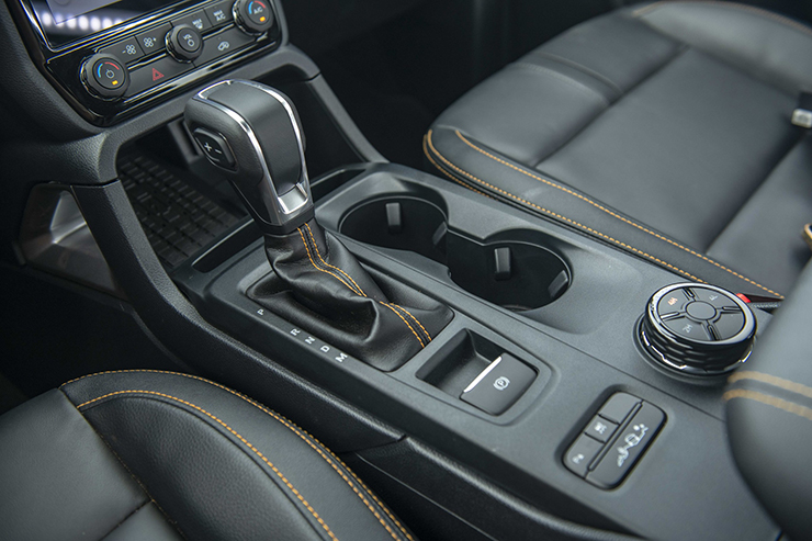 Ford Ranger 2023 đang là mẫu bán tải có màn hình sau tay lái lớn nhất phân khúc. Phanh tay điện tử cũng được làm gọn gàng và sang hơn so với loại cơ vốn khá cồng kềnh và thô như ở thế hệ trước.