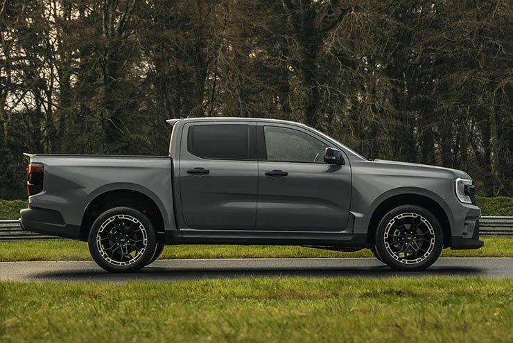 Phía sau bánh trước, MS-RT có bổ sung thêm khe thoát gió và cản sau cũng được thiết kế lại cùng bộ khuếch tán. Một số chi tiết nẹp làm từ chất liệu crom trên cửa cùng logo MS-RT tạo nên diện mạo đặc biệt cho mẫu xe này. Ranger MS-RT sử dụng bộ mâm kích thước 21 inch đặc biệt kết hợp bộ lốp Continental ContiSportContact 275/45, đây là bộ bánh xe lớn nhất từng có trên Ranger. Chiếc xe tải cũng đã được hạ xuống 40,6 mm (1,6 inch) nhờ vào hiệu chỉnh hệ thống treo trước và sau, tạo