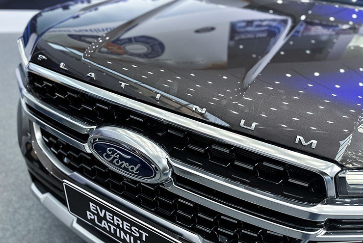 So với phiên bản Titanium, Ford Everest Platinum thay đổi toàn diện về cả ngoại hình và nội thất bên trong. Dễ dàng nhận biết là cụm lưới tản nhiệt sở hữu thiết kế mới với các mắt lưới mạ chrome cao cấp cùng dòng chữ Platinum chính giữa nắp ca-pô.