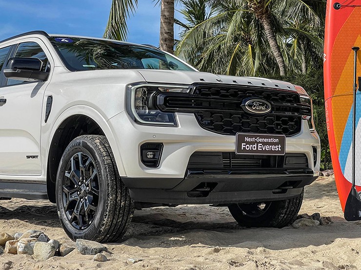 Ford Everest là mẫu SUV 7 chỗ được phát triển từ khung gầm của dòng xe bán tải Ford Ranger. Xe đã bước sang vòng đời thứ 4 và ra mắt toàn cầu vào ngày 1/3/2022. Ngoại thất xe được thiết kế theo phong cách mạnh mẽ, nhiều chi tiết được sơn màu đen như cụm lưới tản nhiệt, và có dòng chữ “EVEREST” ở nắp ca-pô. Xe được trang bị bộ mâm 20 inch đa chấu sơn màu đen.