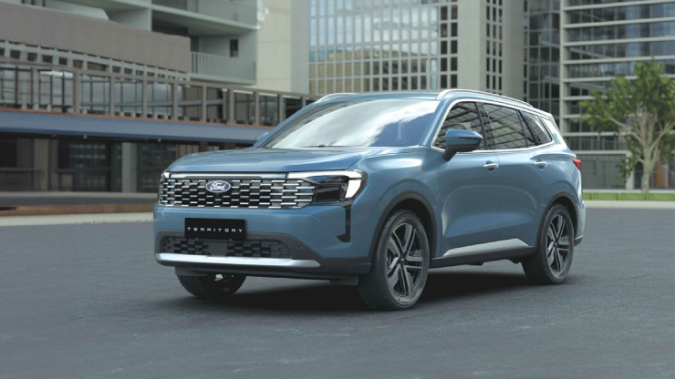 Mẫu Territory mới giữ nguyên chiều dài cơ sở 2.726 mm và khoảng sáng gầm 190 mm, nhưng chiều dài tổng thể tăng lên 4.685 mm. Lưới tản nhiệt được thiết kế kiểu tổ ong mở rộng, kết hợp với đèn pha LED projector có dải LED ban ngày hình chữ L, tạo vẻ đẹp năng động và hiện đại. Màu sơn Xanh khói (Vapor Blue) và mâm hợp kim càng làm nổi bật cá tính của xe.