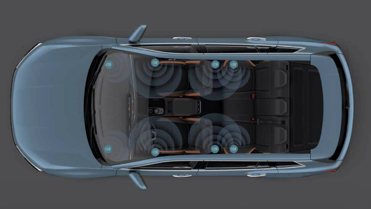 Khoang lái sử dụng cụm màn hình đôi liền mạch 12,3 inch, tông màu nội thất thể thao với ghế da điểm nhấn cam. Hệ thống âm thanh Arkamys 3D Audio 8 loa, cửa sổ trời panorama và cửa gió cho hàng ghế sau giúp mang lại trải nghiệm cao cấp. Cốp xe dung tích 448 lít, mở rộng tới 1.422 lít khi gập hàng ghế sau. Điểm mới đáng chú ý là gương chiếu hậu trong xe tích hợp camera 2 MP với HDR, giúp cải thiện tầm nhìn ban đêm.