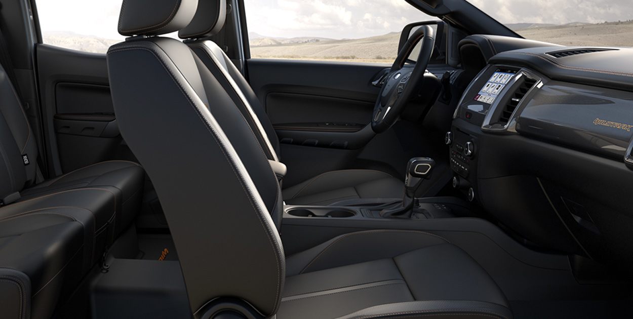 Mẫu xe ô tô mới Ford Ranger 2020 lựa chọn nỉ và loại da pha nỉ để làm chất liệu bọc ghế với đường chỉ khâu nổi bật. Theo đó, phiên bản XLS sử dụng ghế ngồi bọc nỉ, bản XLT sử dụng chất liệu nỉ cao cấp hơn trong khi ghế ngồi trên bản Wildtrak bọc nỉ pha da cao cấp.