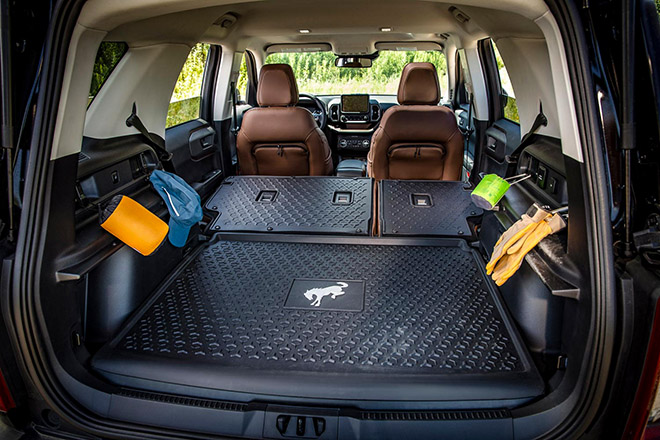 Tại thời điểm ra mắt, Bronco Sport công bố 5 phiên bản gồm: Base, Big Bend, Outer Banks, Badlands và First Edition (lốp 29 inch). Thiết kế thực dụng ngoài việc tăng sự cứng cáp và nam tính, còn đem đến không gian cực rộng rãi trong nội thất. Người dùng dễ dàng đem theo vô số hành lý và vật dụng, cực kỳ phù hợp cho những chuyến đi cắm trại.