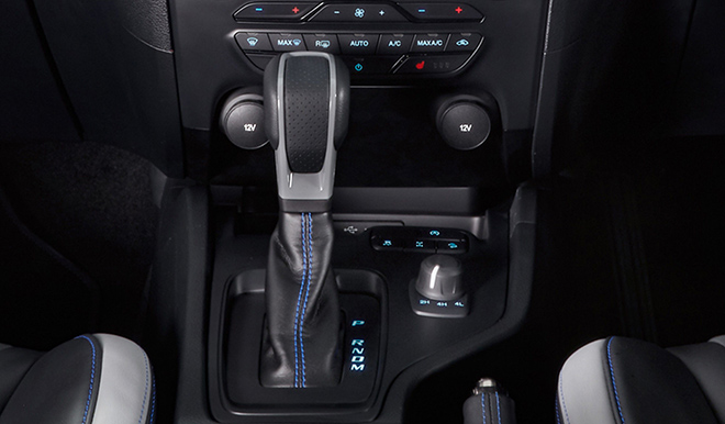 Ford đã đưa ra những cải tiến ấn tượng hỗ trợ việc chuyển đổi giữa hệ thống dẫn động 2 bánh và 4 bánh trở nên dễ dàng và thuận tiện hơn, từ đó giúp các chủ xe Ranger sẵn sàng chinh phục mọi địa hình. Núm điều chỉnh Hệ thống gài cầu điện tử (ESOF) được đặt gần cần số, nằm cạnh các nút bấm điều khiển hệ thống kiểm soát lực kéo và khóa vi sai cầu sau. Hệ thống này cho phép người lái chuyển đổi từ chế độ 1 cầu (2H) sang 2 cầu (4H) ngay cả khi xe đang chạy mà không cần giảm tốc độ. Một động cơ điện cũng được sử dụng để hỗ trợ người lái chuyển sang chế độ 2 cầu chậm (4L) khi di chuyển trên những dạng địa hình khắc nghiệt hơn. Chỉ với hai ngón tay, bạn có thể nhẹ nhàng chuyển qua lại giữa các chế độ truyền động, từ đó, giúp việc điều khiển chiếc bán tải Ranger trở nên vô cùng dễ dàng.