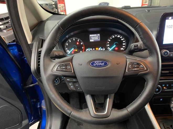 Khoang cabin của Ford EcoSport 2020 cũng tương tự như đời cũ. Khu vực bảng trung tâm là một màn hình giải trí dạng nổi, vô-lăng tích hợp các phím chức năng, đặc biệt là có sự xuất hiện của các nút bấm cài đặt Cruise Control và nút cài đặt giới hạn tốc độ Lim.