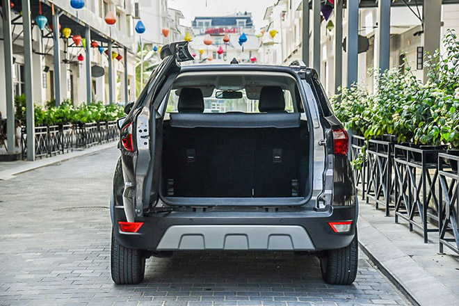 Khoang hành lý của Ecosport có thể tích khá lớn, hàng ghế sau có thể gập được theo tỷ lệ 60:40 hoặc gập phẳng hoàn toàn để tối đa hóa khả năng chứa đồ khi cần thiết. Bên trong khoang nội thất được trang bị hơn 20 vị trí để đồ cho hành khách, qua đó những món đồ nhỏ bạn mang theo luôn tìm được chỗ yên vị trên xe để sử dụng khi cần. Hộc đựng đồ kiêm bệ tỳ tay cho lái xe cũng là một cải tiến thông minh và thực tiễn, giúp tạo sự tiện dụng và thoải mái cho người lái. Ở phần trang bị, có thể thấy Ecosport 2019 gần như không quá thua kém so với hai đối thủ cùng phân khúc sở hữu mức giá cao hơn là Kona và HR-V.